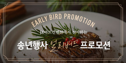 이벤트 & 프로모션 Event & Promotion JK아트컨벤션의 다양한 이벤트와 혜택을 만나보세요. 송년행사 프로모션 50명 소규모 행사에서 400명 대규모 행사까지세심한 정성과 최상의 서비스로 모시겠습니다. 이벤트 기간 2025/08/01 ~ 2025/09/30 2026년 썸머 웨딩 프로모션 2026년 7월~ 8월 예식 진행 고객홀사용료+생화장식+식대 할인 진행!! 이벤트 기간 2025/05/27 ~ 2025/08/09 2025년 2월, 아트리움홀 리뉴얼 완료 별빛 가득한 은하수 아래, 유러피언 감성으로 새롭게 피어나다. 이벤트 기간 2024/11/14 ~ 계속 1